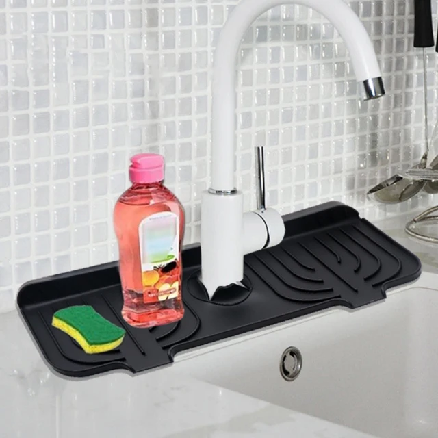 Silicone Kitchen Sink Faucet Mat - Self-Draining Drip Catcher Tray, Splash Guard & Sink Protector for Faucet Handle