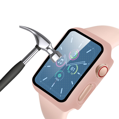 IWatchシリーズ用スクリーンプロテクター付きウォッチケース、ハードPC全体保護カバー内蔵強化ガラスフィルム